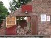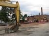 Another layer of the Detroit Theatre has been removed; this time revealing curtains and other fabric hanging off of the old building. The building has been demolished up to the lobby/snack bar area — from the right angle on Woodward Avenue, you can see the other side of Detroit Avenue through the lobby doors.