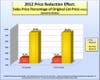 Alright, so the first graph, which charts the sale price in relation to its original list price. The yellow bar is the percentage homes sold for in relation to the asking price that never reduced their price, and the red reflects the percentage of asking price that went through one or more price reductions before they sold.