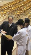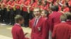 The Lakewood High School Ranger Marching Band traveled to The Ohio State University on Saturday, October 6th to participate in the 2012 Homecoming Skull Session at St. John Arena prior to the nationally televised OSU-Nebraska game. This by-invitation-only appearance by the Ranger Marching Band & auxiliaries (Flags & Rangerettes) was an opportunity to perform in front of a packed house, including the OSU Marching Band, the OSU Athletic Band, and the OSU Men's Glee Club. Brutus the Buckeye, the 2012 Ohio State Buckeye football team, and Head Coach Urban Meyer also made appearances at the event. Thanks to Lakewood City Schools, the Board of Education and LHS Administration for making this trip possible.