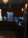 - Glass mosaic back splash 2nd floor. Stainless steel backsplash 1st floor