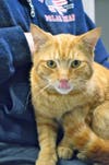 Shy at first, this guy was found wandering the streets of Lakewood. Now that he has calmed down and gotten used to his surroundings, he's quite the sweetheart. Look at him snuggling with his black cat roomate, he even gets along well with other cats! Take him home today.
