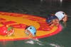 Lucas Yousko, wearing a red crab hat, officiates the first race.