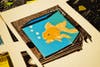 Hereβs how he did it: First, using a sharp gauge like a chisel, he carved the entire scene for a picture onto a wooden block, and cranked a blank sheet of paper through the press to create the outline. Then he would use the outline to create a separate block for each color in the picture, and continue cranking the sheet through, color-by-color, until the scene was created.