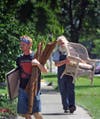 Neighbors — many of them children — gathered on lawns on the street hoping to catch a glimpse of a star. The film is an adventure comedy about a girl who loses her younger brother on Halloween.