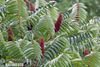 Edible sumacs (Rhus species) are a group of shrubs or low growing trees that grow in clusters. Most commonly you'll find them growing along roads and freeways. Staghorn Sumac (Rhus typhina), the most common around Lakewood, is a small tree that can sometimes grow as high as 30 ft. You will find these all along the road as you drive with their signature rust color berry clusters pointing straight up. Once you notice a stand of these shrubs you'll see them everywhere. The leaves of this sumac can be up to 24 inches long and have as many as 31 sharply toothed, leaflets. The name "staghorn" comes from the hairiness of this species, which appears to be so hairy it's like it's covered in velvet; like a stag's antlers.