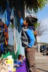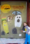Joe and Luke Villafone, both 6, and Maya George, 8, all students at , took to the windows of the . Ten-year-old Marlie Rose, of , spooked-up 's storefront.