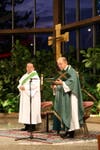 Music director Julie Parotta was joined by Michelle and Chris Ianni, and the Rev. John Thomas Lane in music and song. A Taize song, Peace is Flowing Like a River, had the calming refrain of "Nothing can trouble, nothing can frighten."