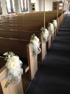 White & Ivory Flower Arrangements and Matching Pew Bows For Your Special Day!