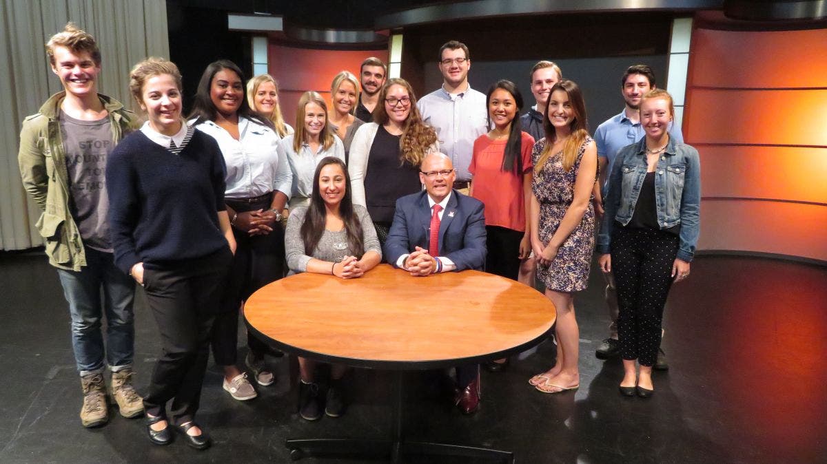 Photo: President Greg Crawford meets with journalism students in Williams Hall Wednesday. -- Contributed photo
