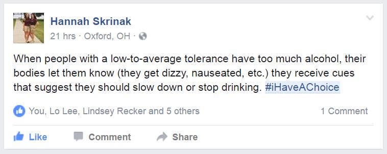 Miami’s Delta Zeta chapter pushed the campaign via social media and recruited nearly 200 students to sign a pledge to drink responsibly. The pledge sheets was displayed outside the Farmer Business School building as a culmination to the initiative.