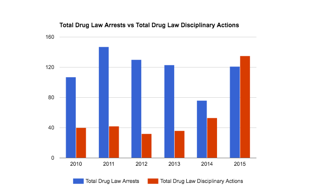Brownell said it is important to consider the individual students represented by the numbers. Each arrest or disciplinary action significantly affects a student’s life. She hopes increased education efforts will help decrease negative consequences.