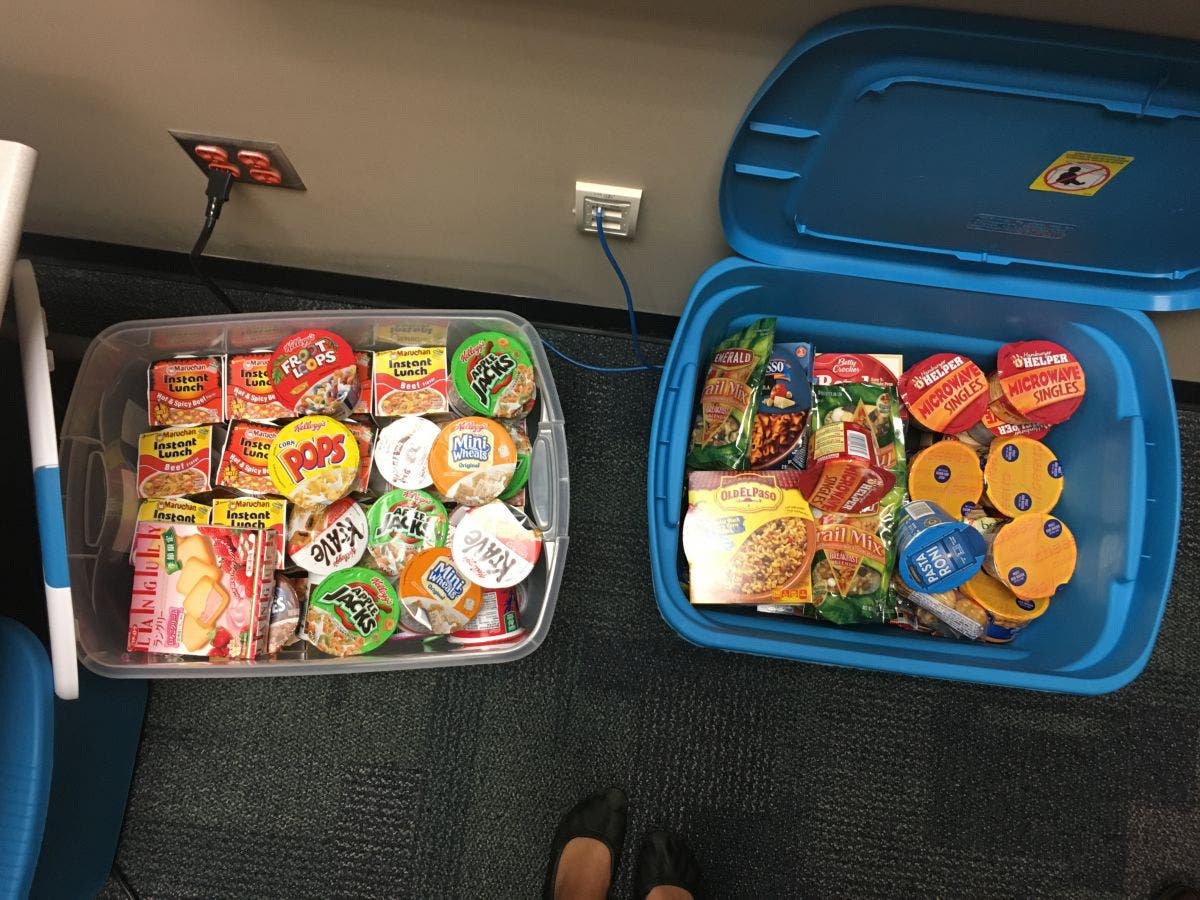 The food pantry, created by Miami’s Summer Scholars students who money left over from their food allotments to good use, is located in Mallen’s office.