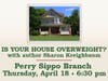 Is Your House Overweight? Popular local author Sharon Kreighbaum visits Perry Sippo Branch on Thursday, April 18 to share tips on the best ways to de-clutter, organize, design, and clean your house. Sheβll have copies of her book for purchase and signing.