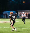 Boardman responded with a Turel Thomson rushing touchdown at 5:53. Hoover immediately responded with a 72-yard touchdown pass from Iero to Luke Grandjean at 5:35 in the first, bringing the score to 21-7 after a successful two-point conversion.