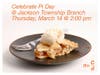 Celebrate Pi Day on Thursday, March 14 at Jackson Township Branch. Weβre hosting a pie exchange in honor of the famous irrational number. Participants are invited to bring a homemade pie to share, along with the recipe and their favorite pie and crust making tips. Coffee and tea will be provided.