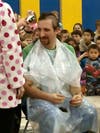 Next, we needed incentive for students to donate. Our principal and fearless leader, Mr. Ile, had two requests. He did not want dress up (last year he dressed as Fancy Nancy) and he wouldn't shave his head. I spoke up and said I didn't have a problem shaving my head. Everyone thought this was a great idea. Mr. Ile and two other male staff members allowed students to smash pies in their faces.