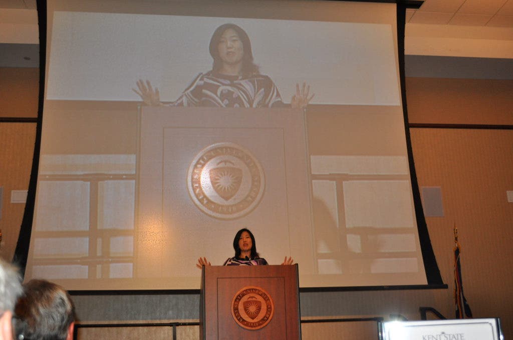 Education reformist Michelle Rhee delivered an impassioned talk on her approach to making vital changes in America's educational system during the Featured Speaker Series at Kent State Stark Monday night