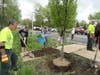 As part of a belated Arbor Day celebration, students planted a new tree at May 18 with the help of .