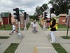 The day begins with bus crossing safety. The kids are taken off the school bus (donated by the ) and taught to wait for the bus driver's signal; look both ways and then cross when it's safe.