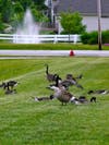 Β A gaggle of about 20 geese, some adults but mostly adolescents not yet able to fly, were crossing from one pond to another in formation that would be envied by the U.S. Army. I couldnβt help but smile, and as I made my right-hand turn away from the geese, I could see other drivers smiling too, and it occurred to me that we donβt take enough time to appreciate these unexpected gifts from nature.