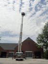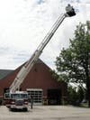 Firefighters test the ladder and bucket equipment on the tower one truck this week.