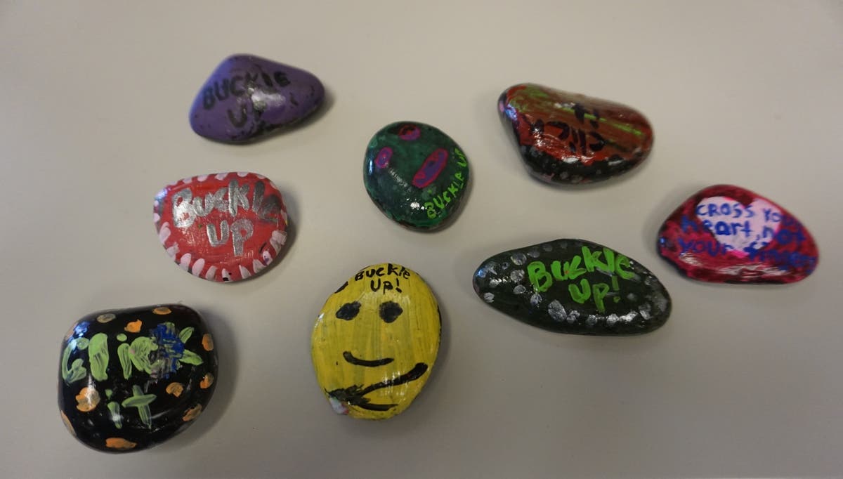 The scavenger hunt for the rocks is part of the Strongsville Police Department's participation in the Safe Communities Coalition, run by University Hospitals, and the Rock the Seat Belt program. Students from Ford Middle School painted the rocks and handed them over to the police on Monday.
