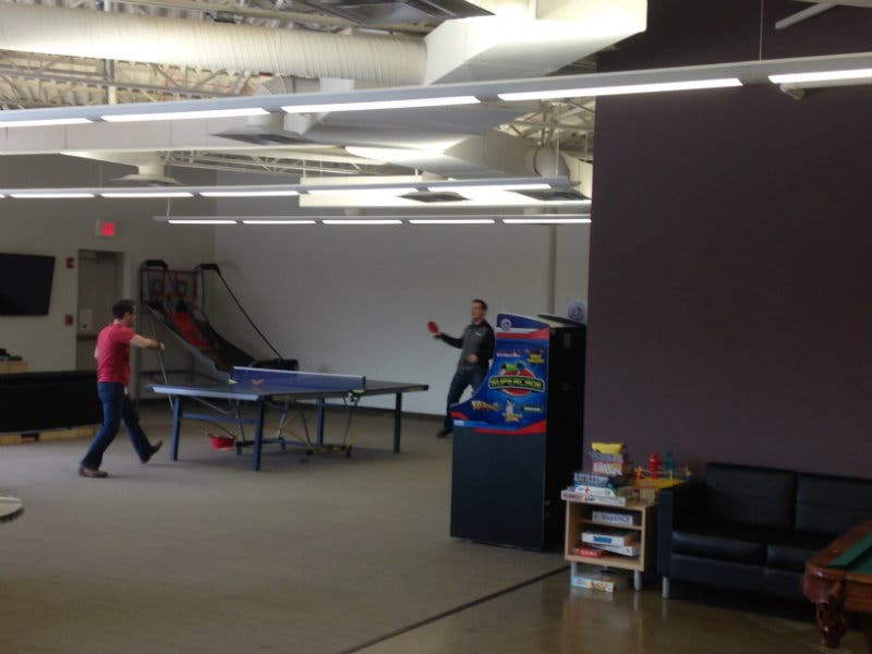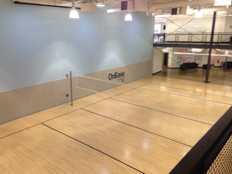 That talk veers perilously close to boilerplate, but the employees at Hyland do appear to be genuinely happy and at ease. During a tour of campus, employees were seen gabbing happily in food courts, aggressively playing ping pong in a game room, and going to play badminton on a full-sized basketball court.