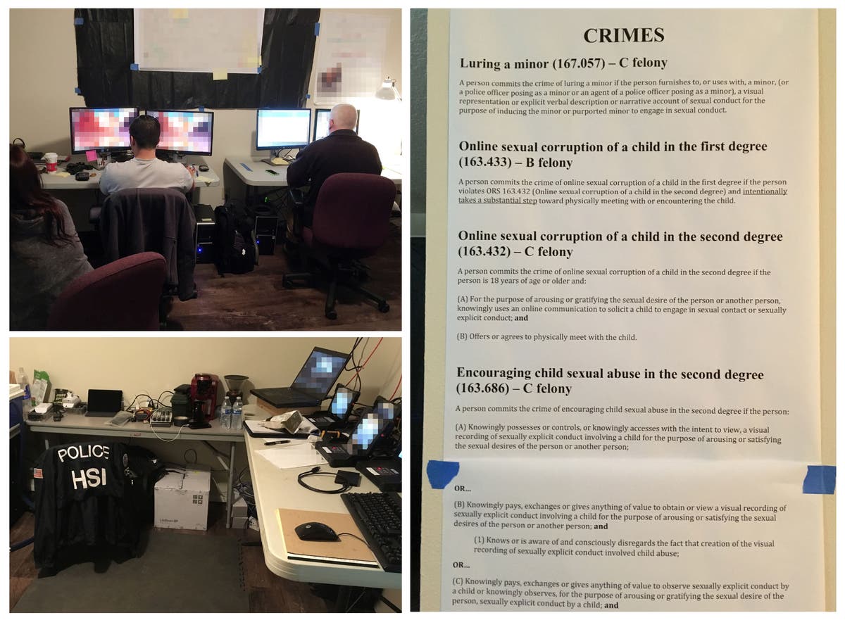 Working alongside the Clackamas and Multnomah counties sheriff's offices, the Washington State Highway Patrol, the Oregon State and Oregon City police, the U.S. and Clackamas County District attorney's offices, and the Department of Homeland Security, the Interagency Child Exploitation Prevention Team (INTERCEPT) from Nov. 17 to 19 used several law enforcement personnel to pose as minors online and setup meetings at an undisclosed location, according to the Clackamas County Sheriff's Office statement.