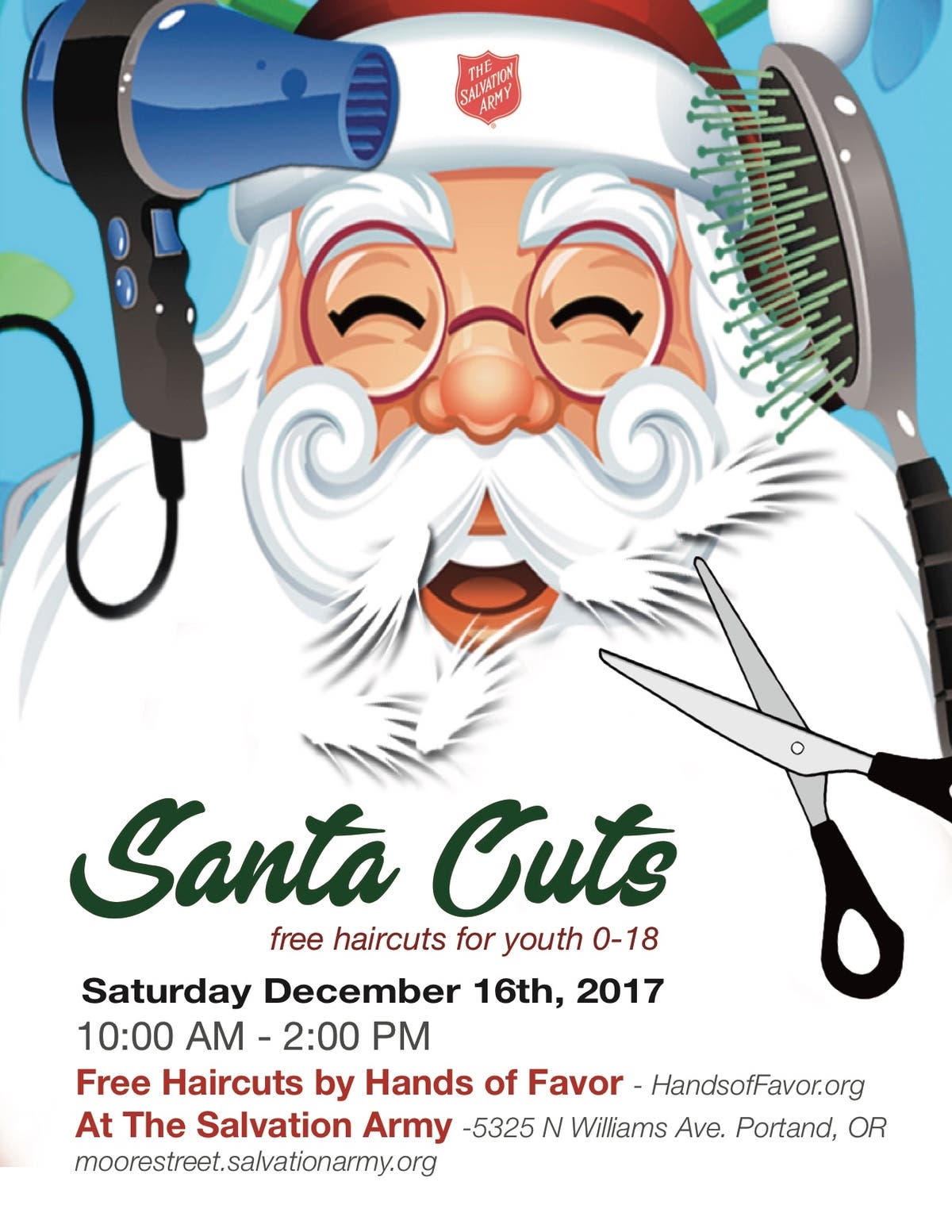 "Santa Cuts" provides kids and teens (0 to 18 years old) a free haircut at The Salvation Army Moore Street Community & Worship Center, 5325 N. Williams Ave. in Portland, from 10 a.m. to 2 p.m. Saturday, Dec. 16. The event is first-come-first-serve, but Salvation Army officials said they hope to provide at least 75 haircuts.