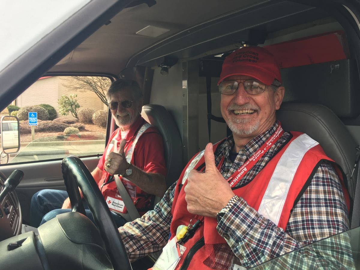 "I saw the news coverage last night and started packing my travel bag," one volunteer, Mike Williams, said. "I knew I needed to help and when I received the call this morning asking if I could go, I was ready. The folks who have been evacuated need us."