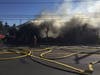 The smoke can be seen from a distance as a fire rips through Bai Yok Thai restaurant at Northeast 82nd and Glisan in Portland.