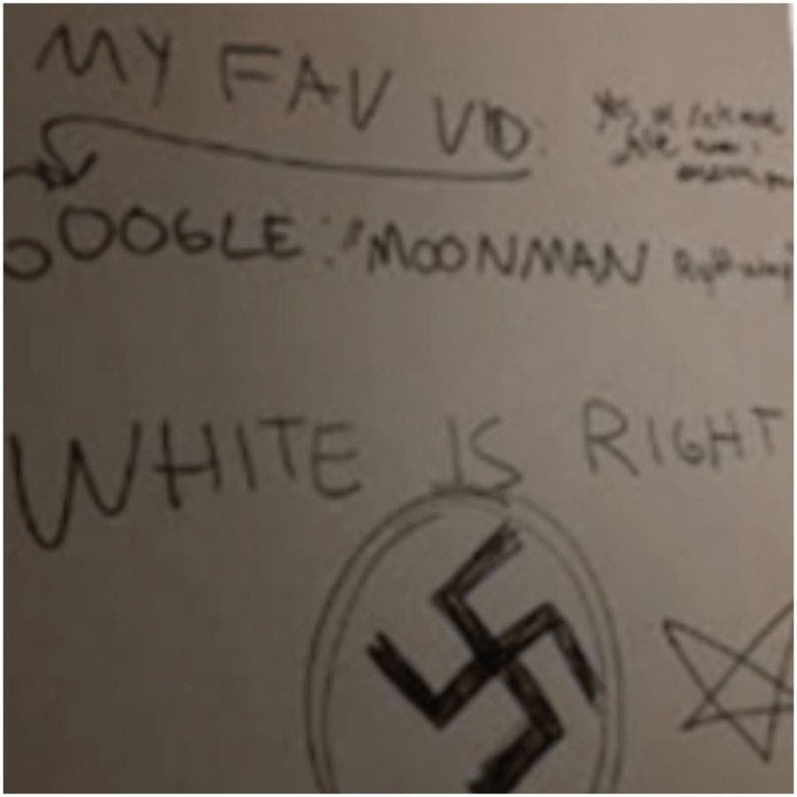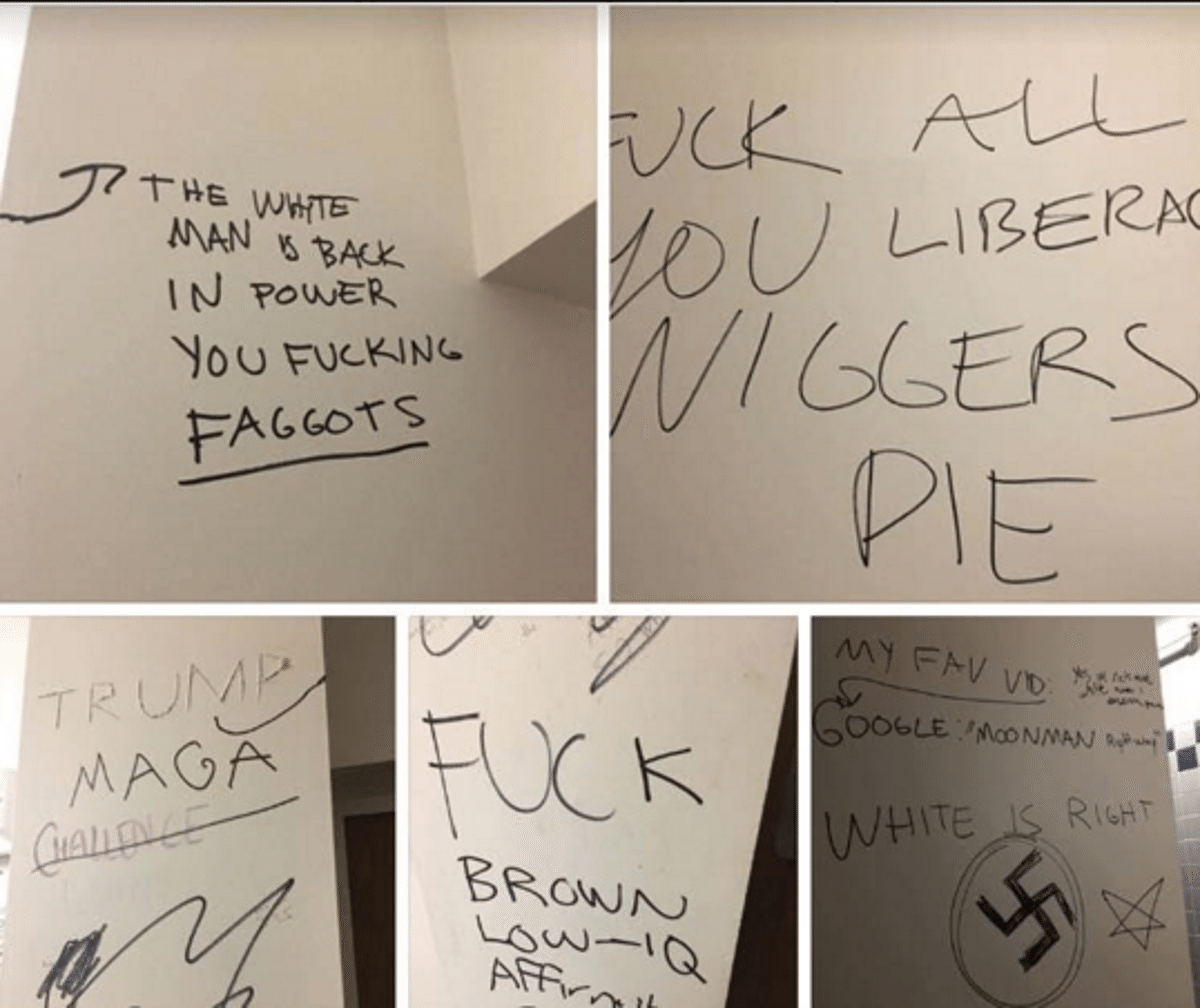 Hate filled graffiti found in two bathroom's in the school's library.