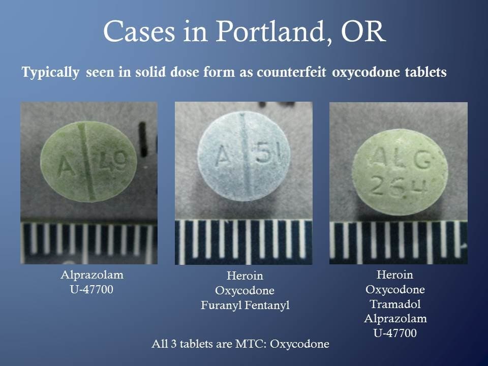Because of the actual ingredients in the counterfeit prescription drugs, the likelihood of fatal overdose is higher, according to the Oregon State Crime Lab. Some tested counterfeit Oxycodone pills were found to contain heroin, Furanyl Fentanyl, Tramadol and other substances, police said.