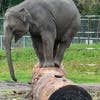 It was a win-win for both Peggy the Train and the elephants at the zoo. A makeover at the World Forestry Center's Peggy the Train exhibit meant that the elephants at the zoo got a bunch of new giant logs to play with.