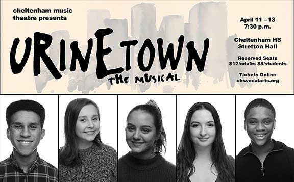 For its 56th annual production, Cheltenham Musical Theater is staging the multiple Tony Award-winning satiric comedy musical “Urinetown: The Musical” Thursday through Saturday, April 11-13 at Stretton Hall at Cheltenham High School.
