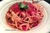 This time, perhaps influenced by my earlier comments, the kitchen almost over-corrected, going rather far in spicing it generously with red pepper. Oddly, however, by the next day, when I had the leftovers for lunch, the sauce had mellowed out to just about right for me.