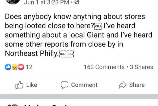 In the Huntingdon Valley community page, there were reports Sunday evening that the Giant Food Store was being evacuated due to protesters, some had even heard that the store was being looted. Later evidence showed that the store had not been touched and, instead, was asking customers to leave so that they could close in accordance with the township’s guidelines.