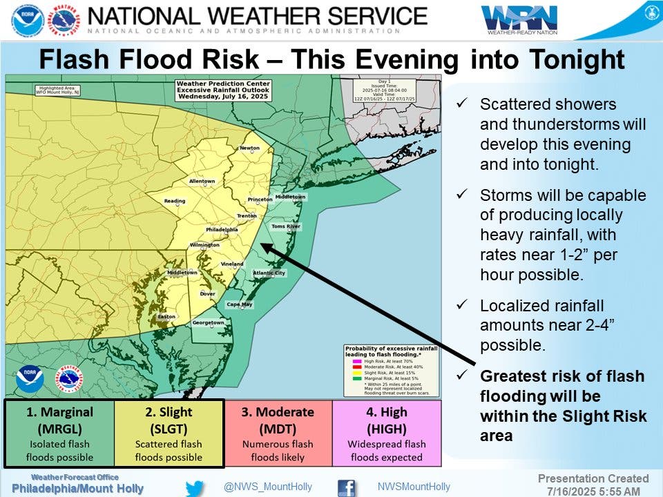 The threat of powerful storms loom over the greater Philadelphia region for the third consecutive day Wednesday, and could bring severe rain that triggers flash floods, the National Weather Service said.