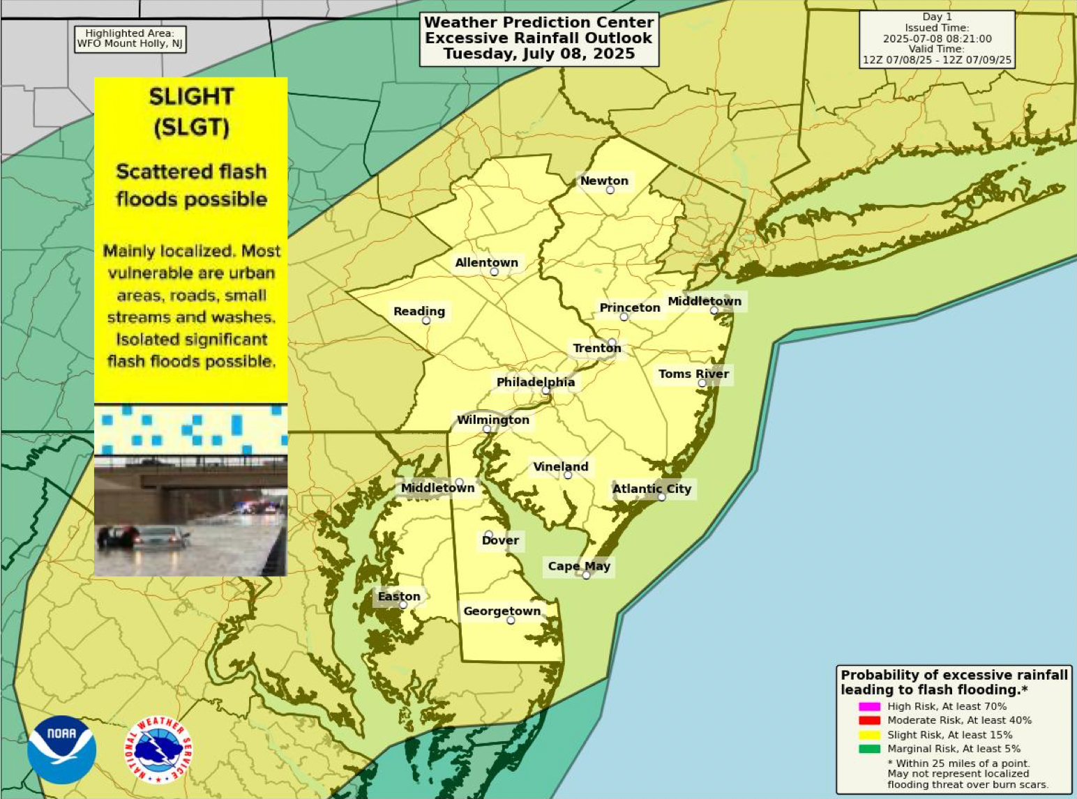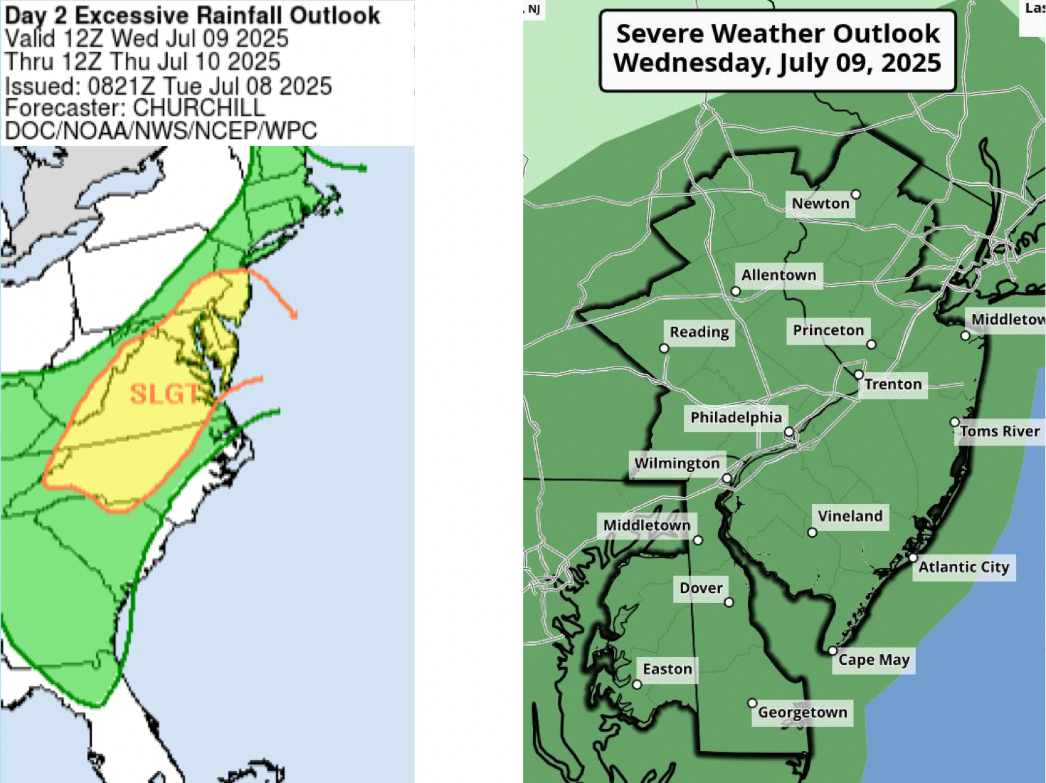 Flood prone areas, particularly suburban creeks and waterways like the Delaware River, the Schuylkill River, Perkiomen Creek, Cobb's Creek, Wissahickon Creek, and more, are at high risk after already receiving rainfall Monday.