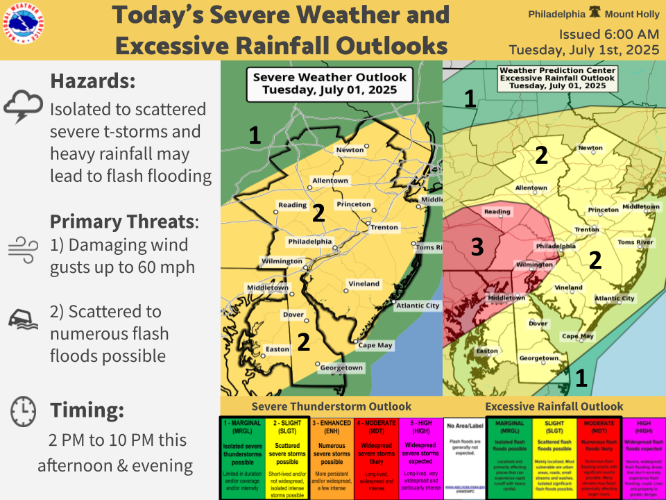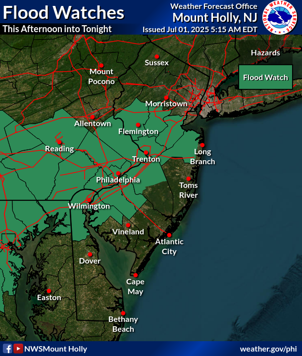 "There has been an increase in the potential flood threat today especially over the urban corridor," the National Weather Service's Mt. Holly, New Jersey branch said in a statement. "Isolated to scattered severe thunderstorms and scattered to numerous flash floods will be possible."