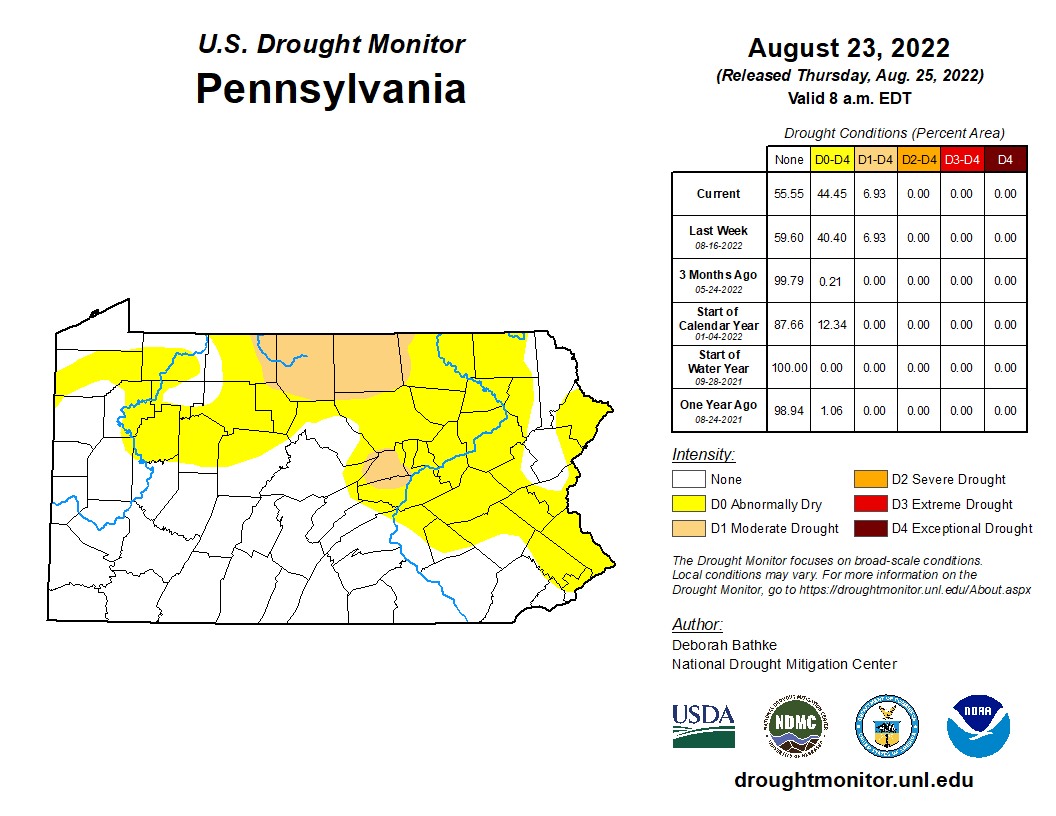 PENNSYLVANIA — The recent burst of heavy rains that hit parts of Pennsylvania was not enough to reverse drought and near-drought conditions in much of the state.