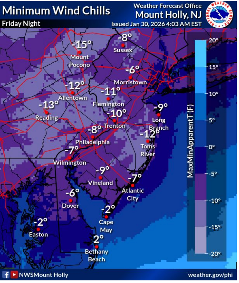The storm this weekend may not accumulate snow in the Philly area, but wind chills dropping to negative 15 will pose plenty danger.