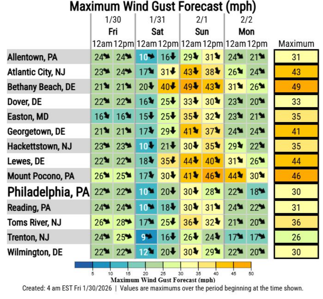 "These (snowfall estimates) could change in either direction depending on the exact track of the storm," the National Weather Service's Mt. Holly, New Jersey branch shared.