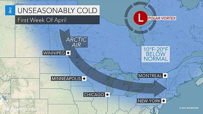 April is going to get of to a cold start — complete with a Polar vortex and the possibility of snow — according to forecasters.