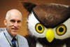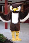 An owl is the school’s long-standing mascot logo, but a costumed owl waved to “walkers” who strolled up the sidewalk and students that hopped off their buses.
