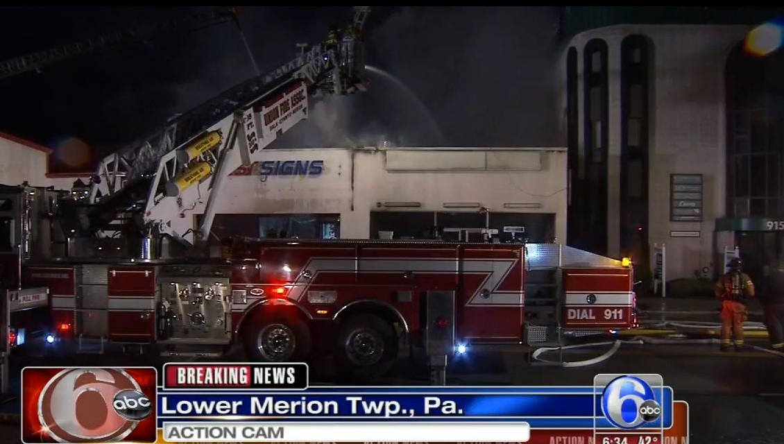 Fast Signs and an unoccupied commercial space were badly damaged by the blaze, ABC said. The unoccupied space was the future home of Main Line Cycles, NBC Philadelphia said.