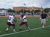 Through the scrums, clusters of violently clashing green and burgundy, Ridley's Smith broke off run after run after run. To the Aces credit, Smith's success wasn't a function of the dominance of the Ridley offensive line (despite an obvious size disadvantage the Lower Merion defensive front more than held their own) or of sloppy tackling (the Aces by and large hung on to the guys they managed to get their hands on) but of the sheer speed and elusiveness of the Raiders back. He was phenomenal. And he was their backup.
