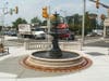 The new fountain at Lancaster and Ardmore avenues began running on Friday.