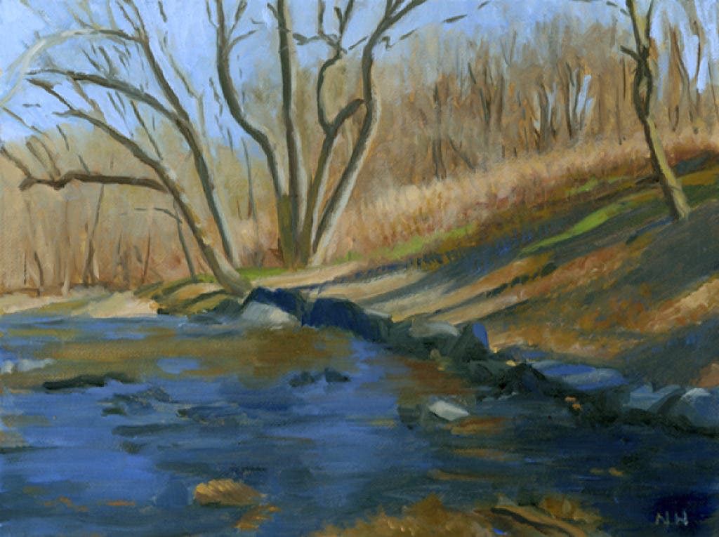 The second area on the Lower Merion Conservancy Watch list is "streams and structures." This painting is from the lovely West Mill Creek Park where you can take your dog and let it run freely while you sit by the water and watch the quiet ripples of the stream. It is a fine piece of nature maintained by our township for your enjoyment.