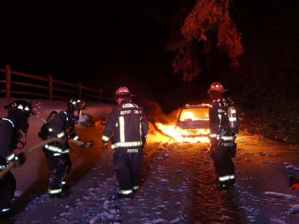 According to the Merion Fire Company of Ardmore, crews responded to a vehicle fire on the 100 Block of Cherry Lane around 2:30 a.m. Wednesday.
